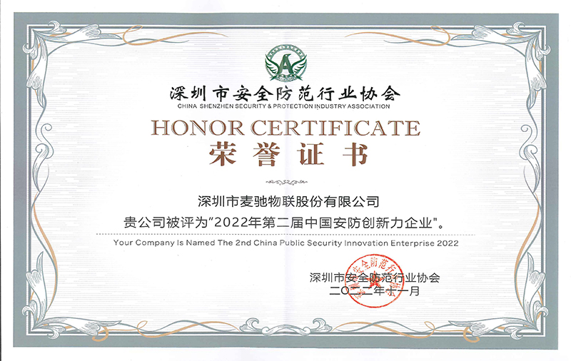 喜訊|祝賀麥馳物聯(lián)榮獲“2022年第二屆中國安防創(chuàng)新力企業(yè)”榮譽