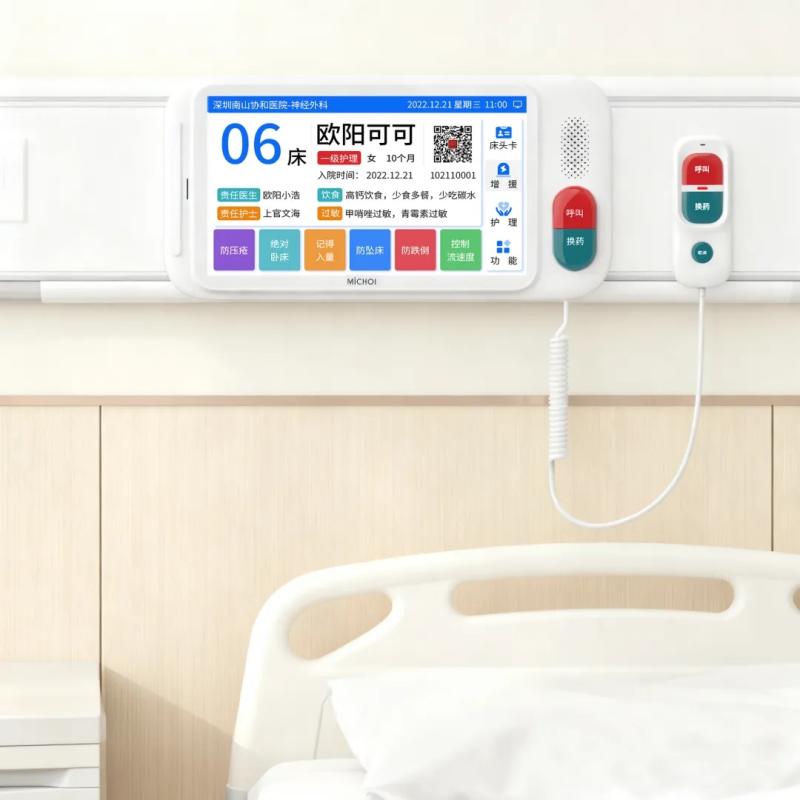 智能床頭屏:集成呼叫對講、費用查詢、視頻探視等功能,患者可一鍵發(fā)起求助,護士站大屏實時顯示位置與狀態(tài);